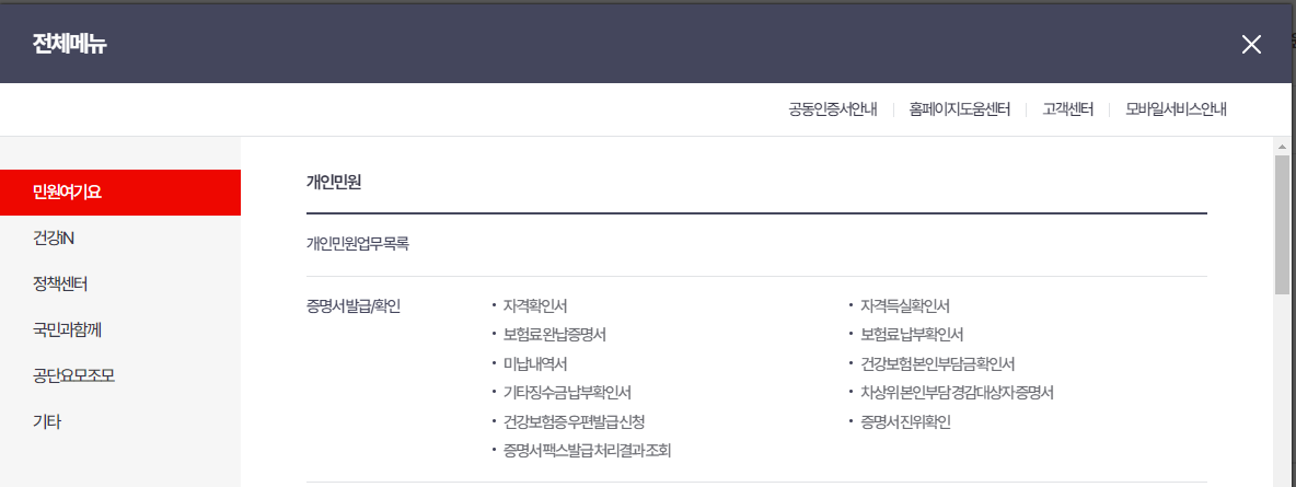 1. 건강보험 자격득실 확인서 (건강보험 홈페이지)