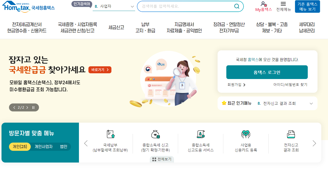 개인공동인증서 로그인 > MY홈택스 > 연말정산 지급명세서 > 소득자료