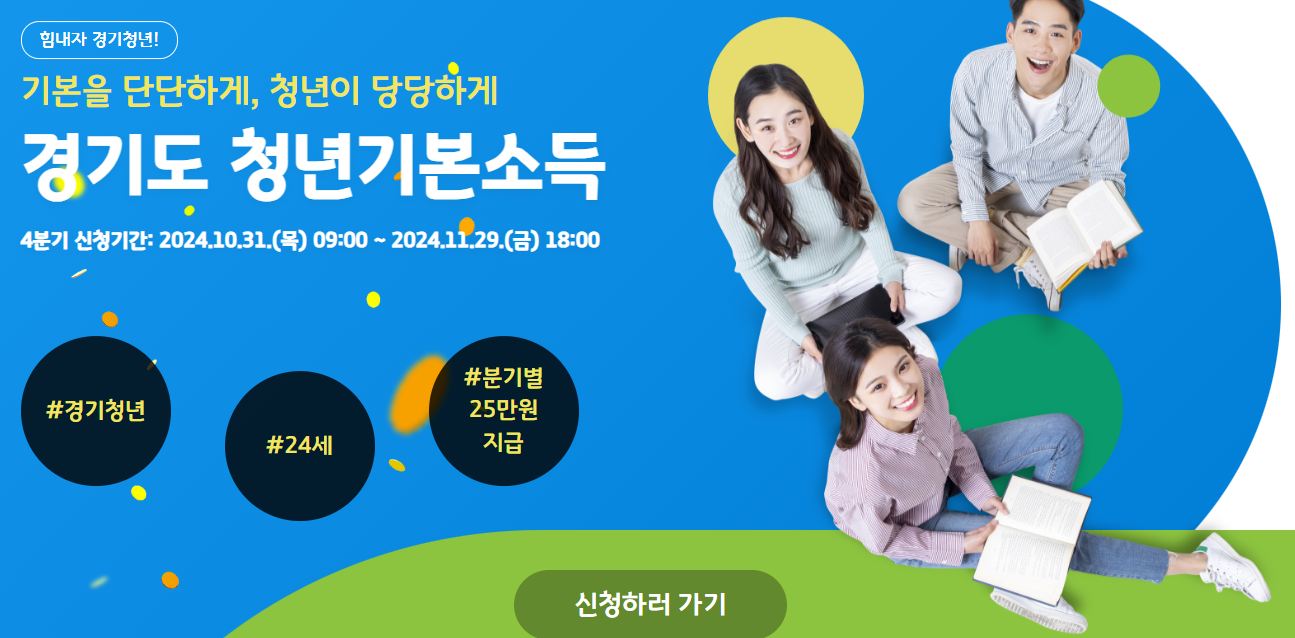 경기도 청년 기본 소득 신청기간 : 2024. 10. 31 ~ 11. 29 (18:00)