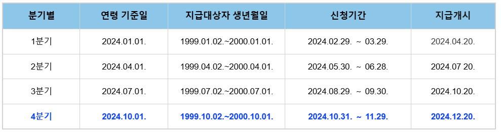 경기도 청년 기본 소득 신청기간 : 2024. 10. 31 ~ 11. 29 (18:00)