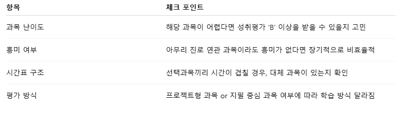 - 학생부 종합전형에서 가산점이 붙는 과목도 있음 (예: 고급수학, 과학탐구Ⅱ)
