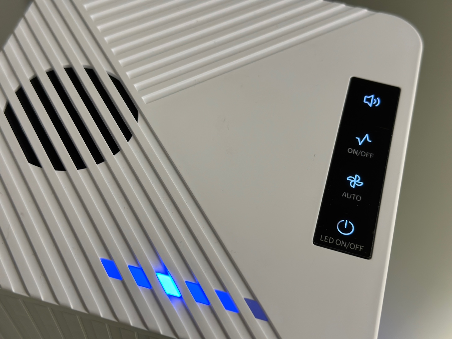 작동 방법은 단순합니다. 맨 하단의 전원 버튼을 통해 작동을 시킬 수 있는데, 길게 누르면 하단의 LED 등을 끄거나 켤 수 있습니다.