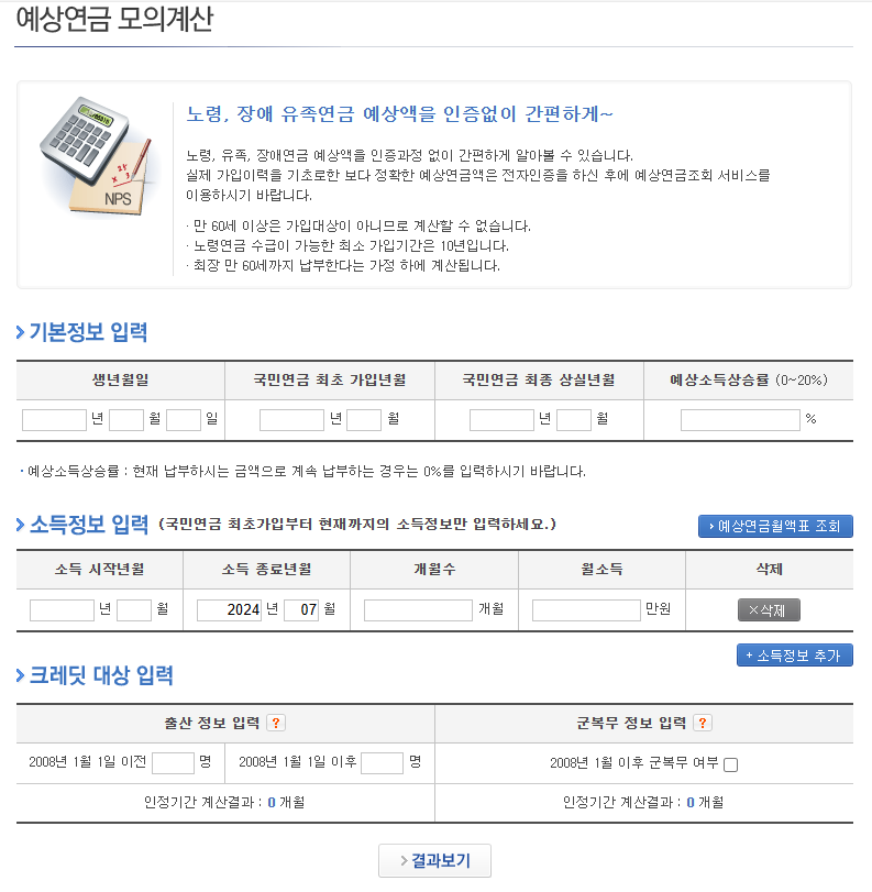 국민연금 예상 수령액 조회
