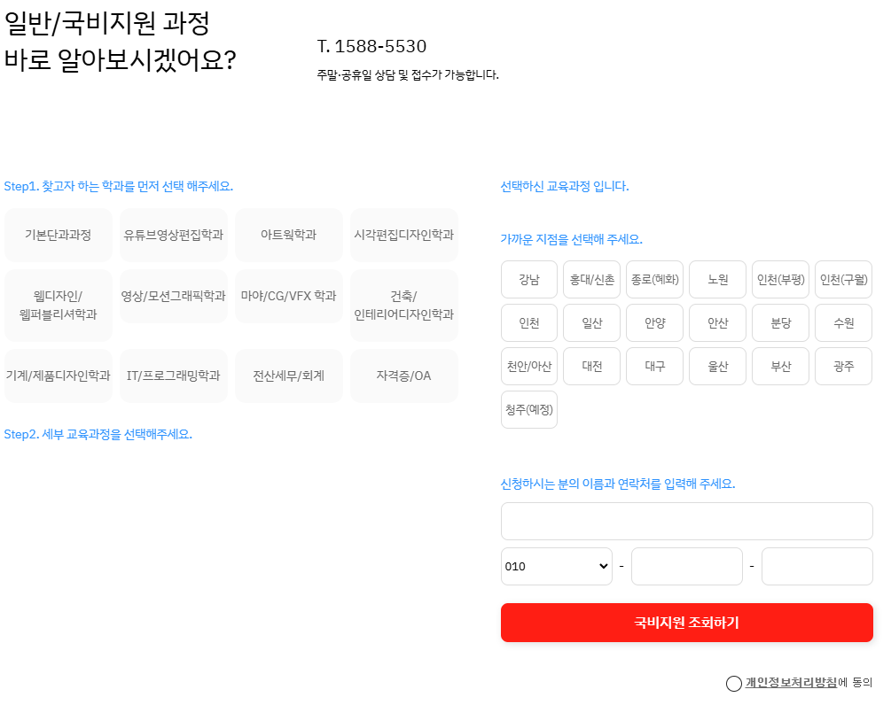 실제로 국비지원학원을 보면 여러 과정을 한꺼번에 하는 곳이 있던데 그런곳 보다는 특정 분야를 서비스 하고 있는 학원이 전문성이 높아보여 신뢰가 가더라고요.
