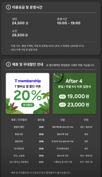 동탄 키즈카페 네이처스케이프의 이용요금은 위의 이미지에 나온대로인데요, 티멤버쉽을 보유한 경우 20%, 생일인 경우 30%할인이 됩니다.:)
