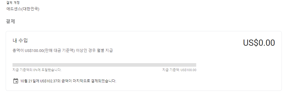 포기하고 싶다가도 이렇게 수익이 실제로 지급되는 걸 보니 다시 하게 하는 애드센스.. 앞으로 더 열심히 해봐야겠습니다!