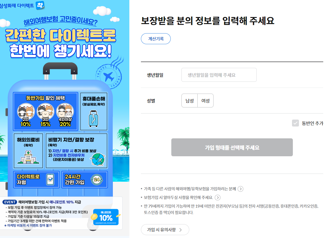 여행자 보험 선정시, 가장 중요한 것은 보장/보상한도액보다는 편의성!