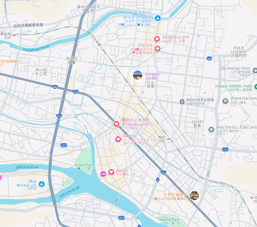아래 구글맵을 공유하니 히타 가실분들은 저장해두시고 쿠로다야를 꼭 들려보시기 바랍니다.