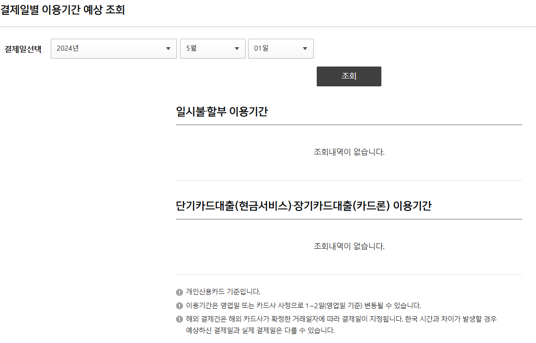 아래를 통해 결제일 별 이용기간을 조회해보실 수 있습니다.