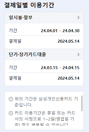 삼성카드 결제일 및 결제일별 이용기간