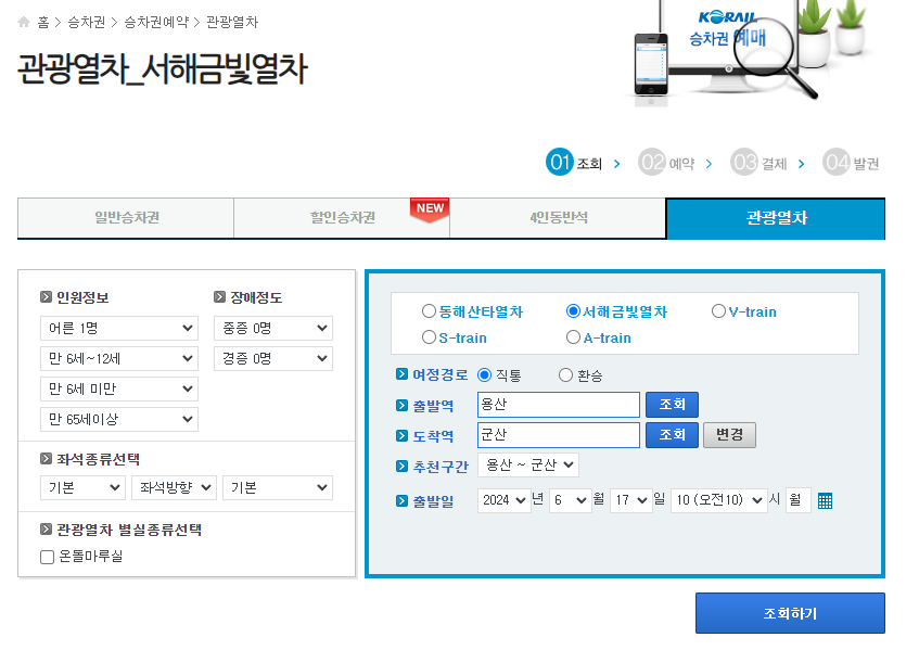 서해금빛열차 온돌 예약 방법 열차 시간표 할인