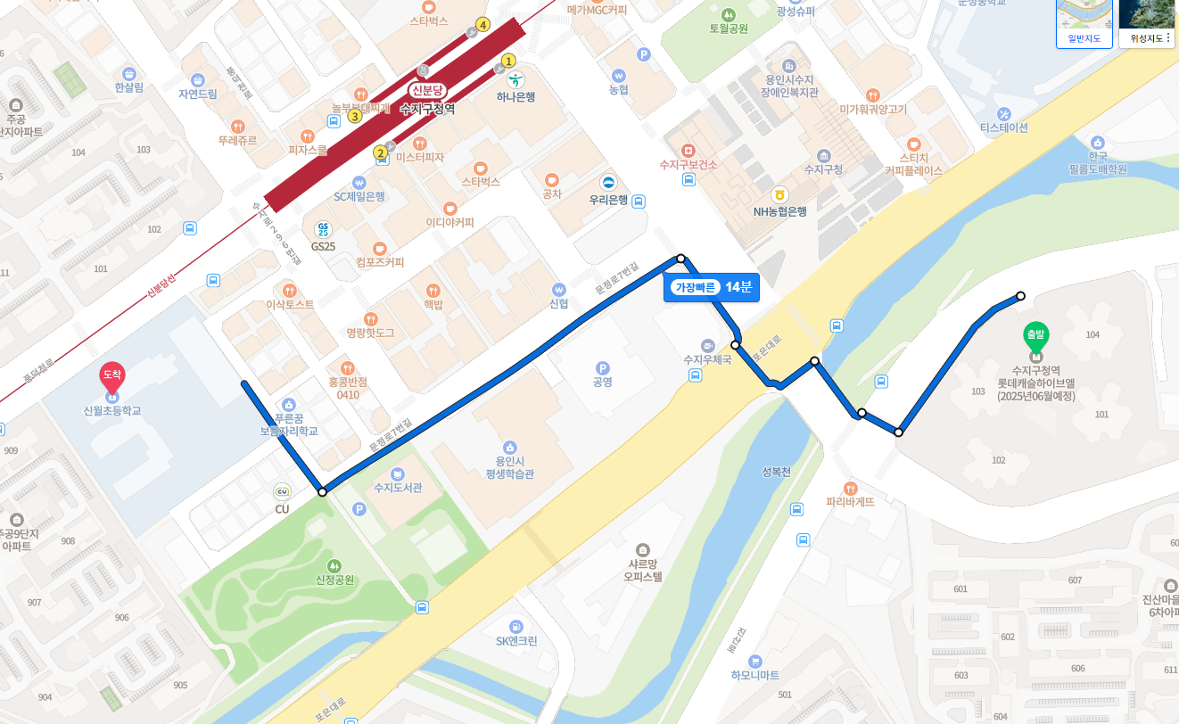 신월초등학교는 수지구청역에서 가까운곳으로 주변 학원가가 용이한곳입니다. 수지 도서관도 근처에 있고요. 다만 하이브엘에서 신월초등학교 후문까지 가려면 큰 길도 건너야 하고 어른 걸음으로 도보 15분 거리에 있어서 조금 불편함이 예상되네요.