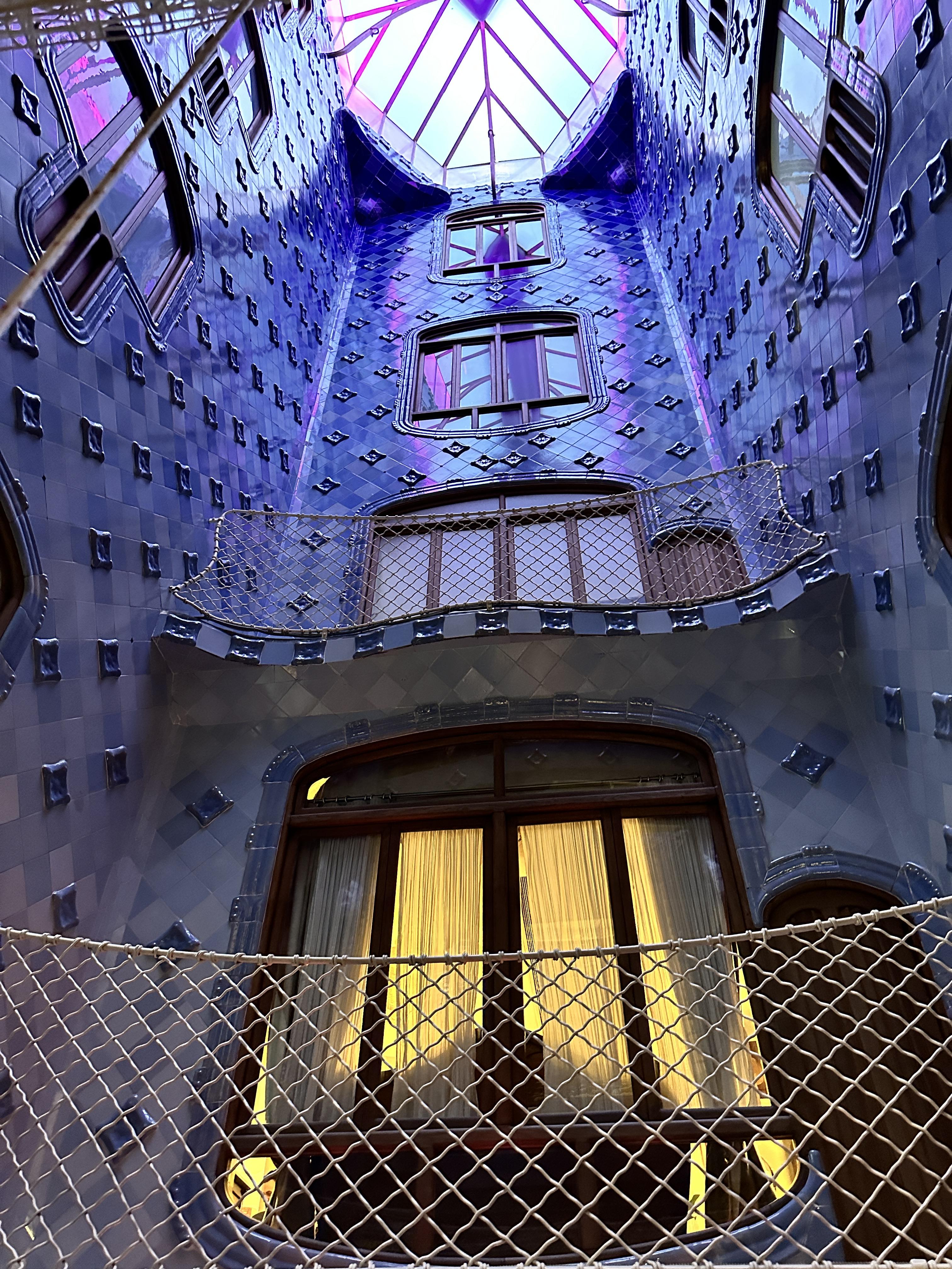 까사 바트요 내부는 자연에서 영감을 받은 곡선과 비대칭적인 구조로 가득합니다. 특히 까사 바트요 중앙 계단과 천장은 마치 동굴 속에 들어온 듯한 느낌을 주며, 자연광을 최대로 활용한 디자인이 돋보입니다. 이곳에서는 가우디의 독창적인 건축 철학을 체감할 수 있습니다.