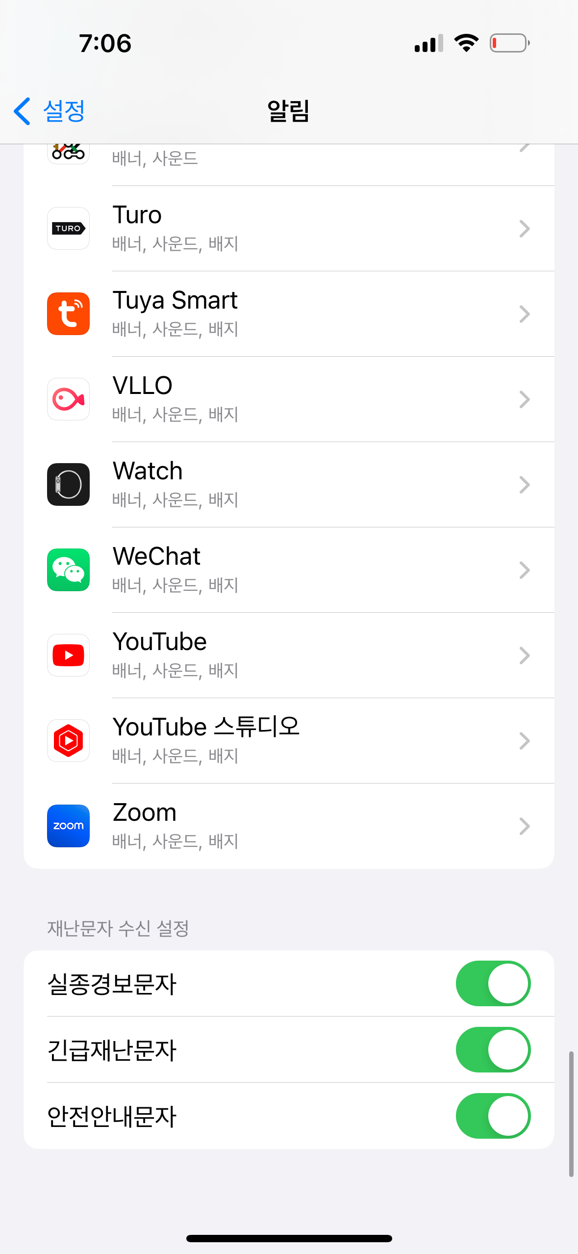 아이폰 재난 문자 차단하기 알람 끄는 법