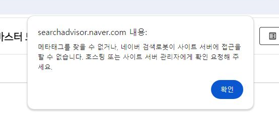 " 메타 태그를 찾을 수 없거나, 네이버 검색로봇이 사이트 서버에 접근을 할 수 없습니다. 호스팅 또는 사이트 서버 관리자에게 확인 요청해 주세요 "