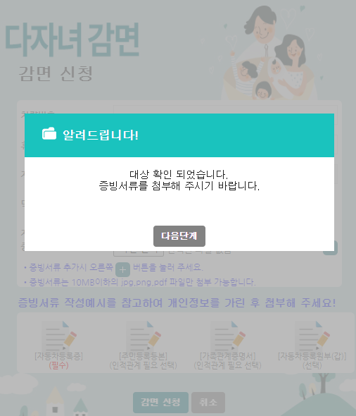 둘째, 작성한 신청서와 함께 필요한 서류를 준비합니다. 필요한 서류는 자동차등록증, 주민등록등본, 가족관계증명서 등입니다. 이 서류들은 다자녀 가정임을 증명하는 중요한 자료이므로 빠짐없이 준비해야 합니다.