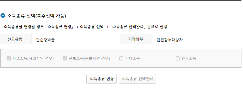 ※ 종합소득세 세금 신고시 아래와 같이 본인이 속한 소득 종류를 모두 선택해야합니다.