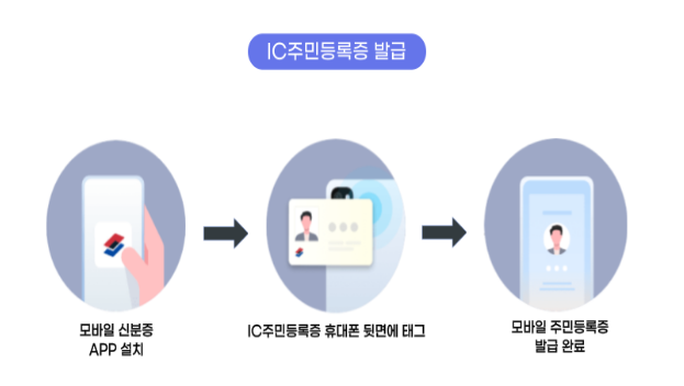 IC칩 내장 주민등록증이 있으면 휴대폰 교체시에도 추가 발급 필요없이 IC칩 내장 주민등록증을 휴대폰에 접촉하기만 해도 모바일 주민등록증 발급이 가능하다고 합니다.