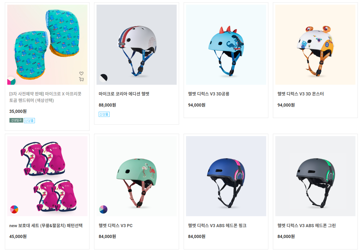 마이크로 킥보드 악세사리가 많이 있지는 않았지만 대부분 모델들이나 색상을 다 가지고 계시더라고요.