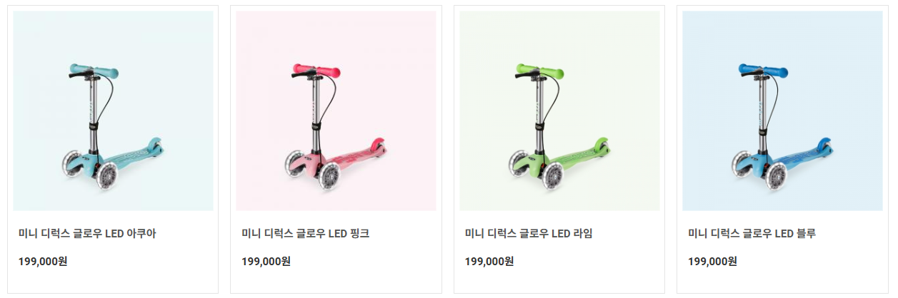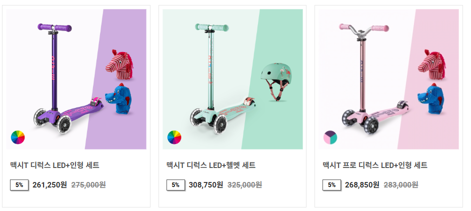 마이크로 킥보드는 색상마다 가격이 조금씩 다르기는 하지만, 미니의 경우 160,000~ 200,000만원 사이의 가격이며 맥시는 240,000~260,000원 정도의 가격대로 형성되어있습니다.