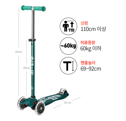 마이크로 킥보드 미니와 맥시는 키 110cm를 기준으로 선택할 수 있도록 안내되어있는데요. 개인적으로 둘 다 사용해보니 마이크로 킥보드는 맥시를 사는 것이 좋은 것 같습니다. 사실 아이들이 킥보드를 잘 타고 많이 타게 되는 시기가 만 3~4세 정도인데 (아이 발달에 따라 다름) 그 정도 나이가 되니 아이 키가 110이 가까워지더라고요.