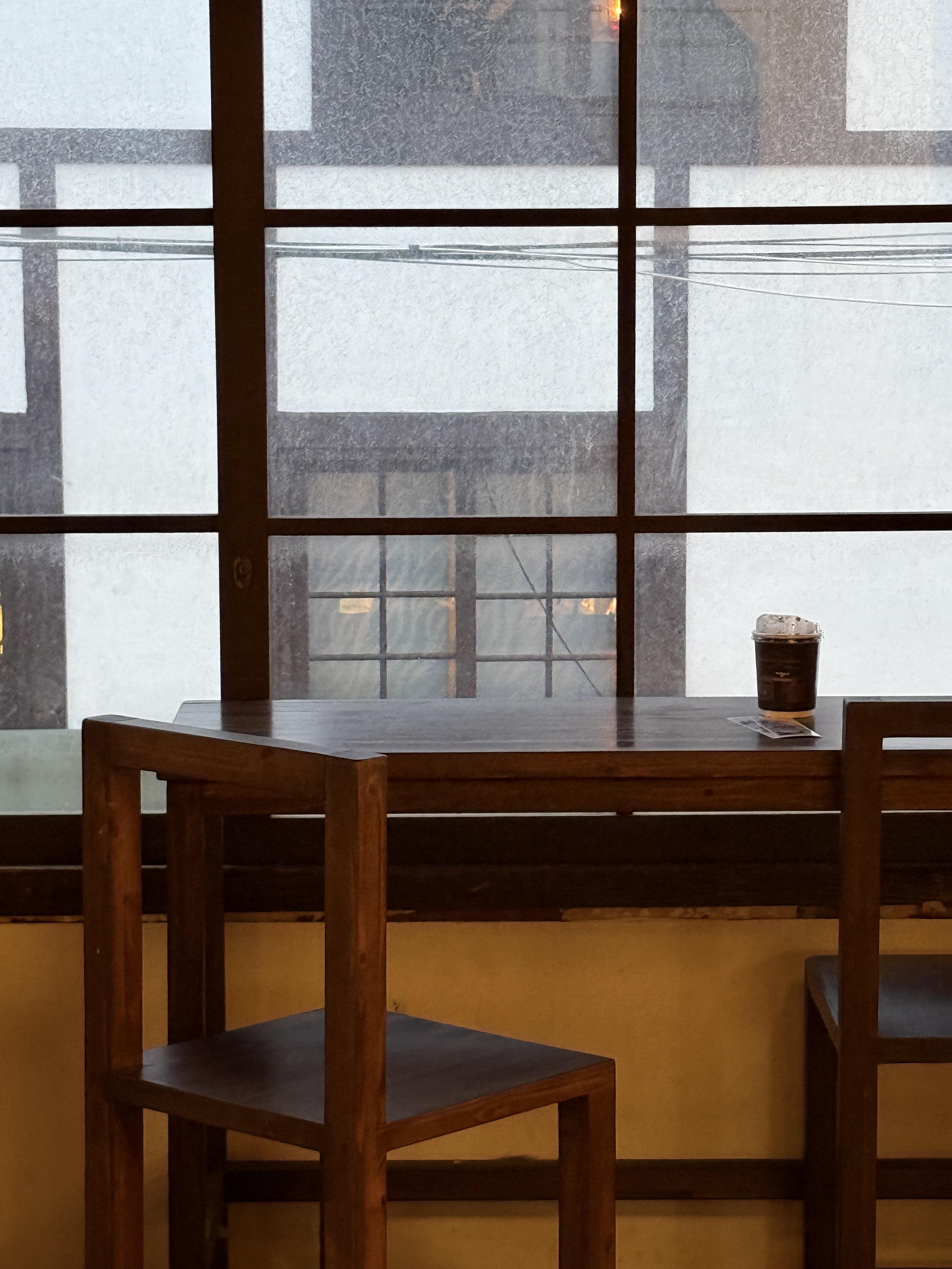 필구라고 불리는 고양이가 한 켠에서 자리를 잡고 있고, 사장님께서 친절하게 지도로 촬영지를 안내해주셨어요. 음료 주문이 필수라 동백라떼와 아메리카노, 핫초코를 시켜 자리 잡았습니다.
