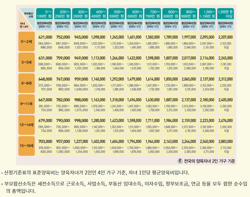 - 추가 비용: 교육비, 의료비, 취미활동 등 자녀의 특별한 필요에 따라 추가 비용이 고려됩니다.