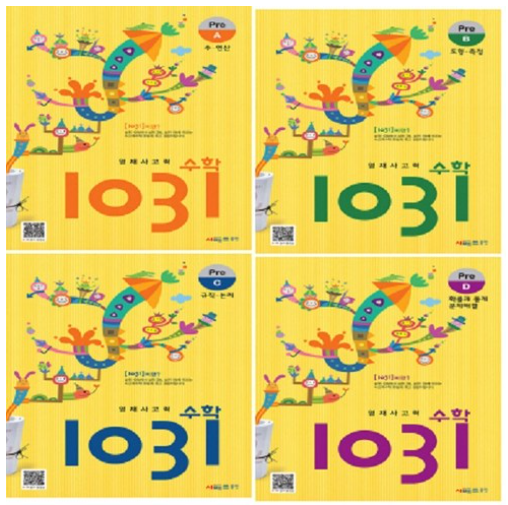 특징: 사고력 수학 교재의 대표 주자인 ‘1031 시리즈’는 논리적 사고와 창의적 문제 해결 능력을 키우는 데 중점을 둡니다. 다양한 난이도와 문제 유형으로 구성되어 있어 ‘황소 수학 입학 테스트’ 준비에 꼭 필요한 도서를 찾는 학부모들 사이에서 인기입니다.