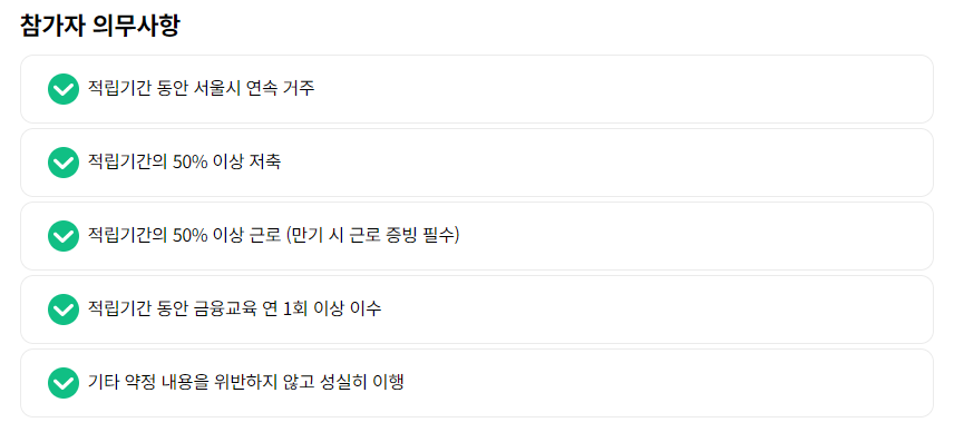 저축이 시작되면 서울시의 매칭 지원금도 함께 적립됩니다. 이를 통해 저축 목표를 달성할 때까지 꾸준히 관리하면 됩니다. 또한, 저축 기간 중 금융 교육 프로그램에 참여해야 하며, 이를 통해 재정 관리 능력을 향상시킬 수 있습니다.