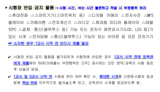 수능 반입 금지 물품