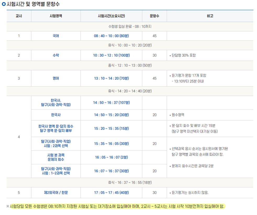 2024년도 수능일, 날짜 및 시간