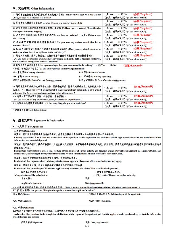 3. 여행 계획 : 중국 여행의 목적, 여행 일정, 숙박 장소 등 여행 계획에 관련된 정보를 기재 해야 합니다.