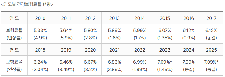 - 2024년 건강보험요율 7.09% → 2025년 건강보험요율 7.09%